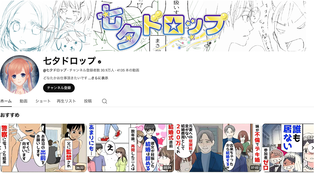 2019年7月7日の七夕に運営を開始し、織姫ちゃんという固定キャラクターを軸に展開しているチャンネルです。 日常に潜むスカッとする出来事をテーマにした漫画動画を配信しており、新作1本と過去作をまとめた動画の計2本を毎日投稿中!